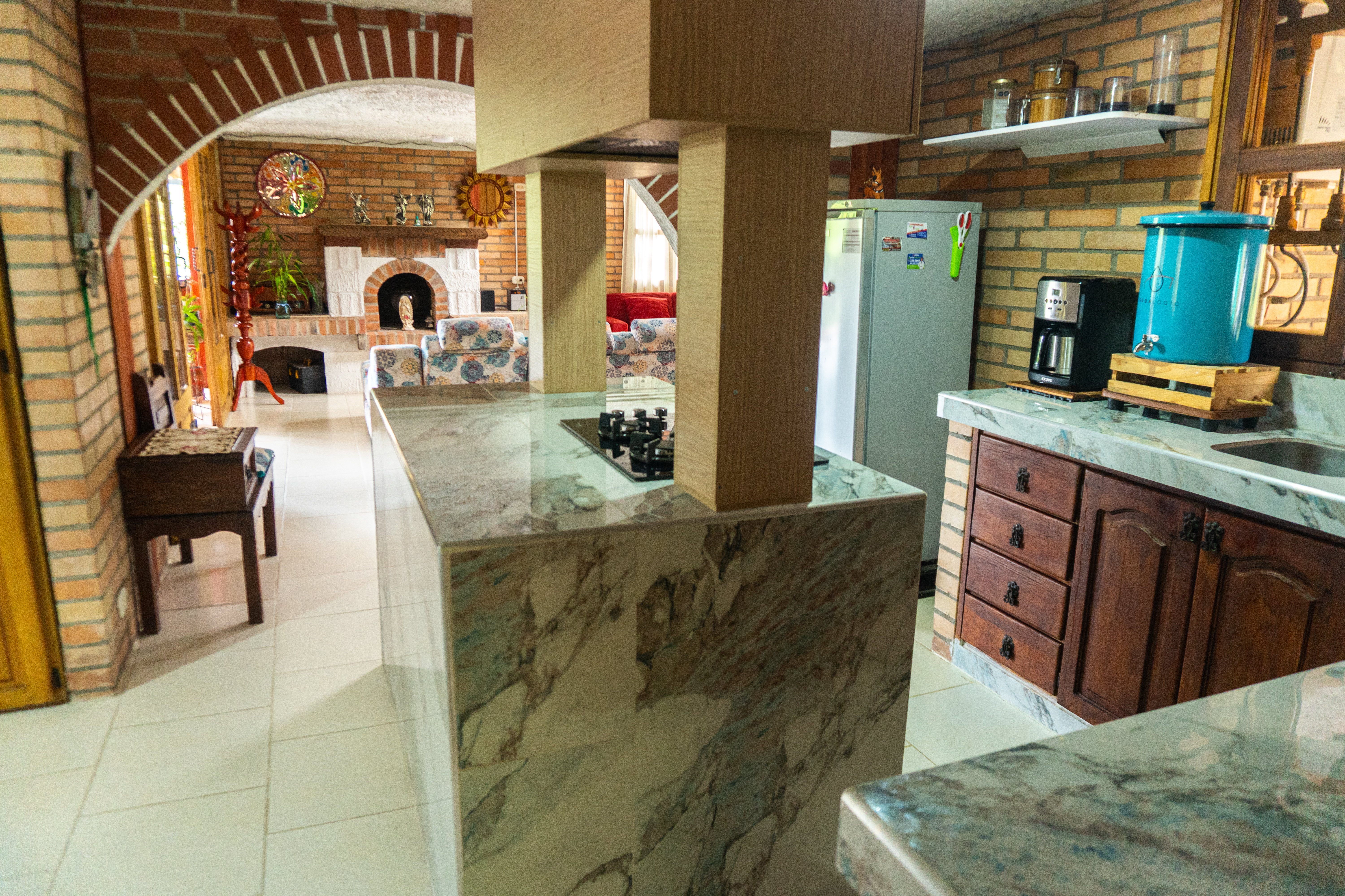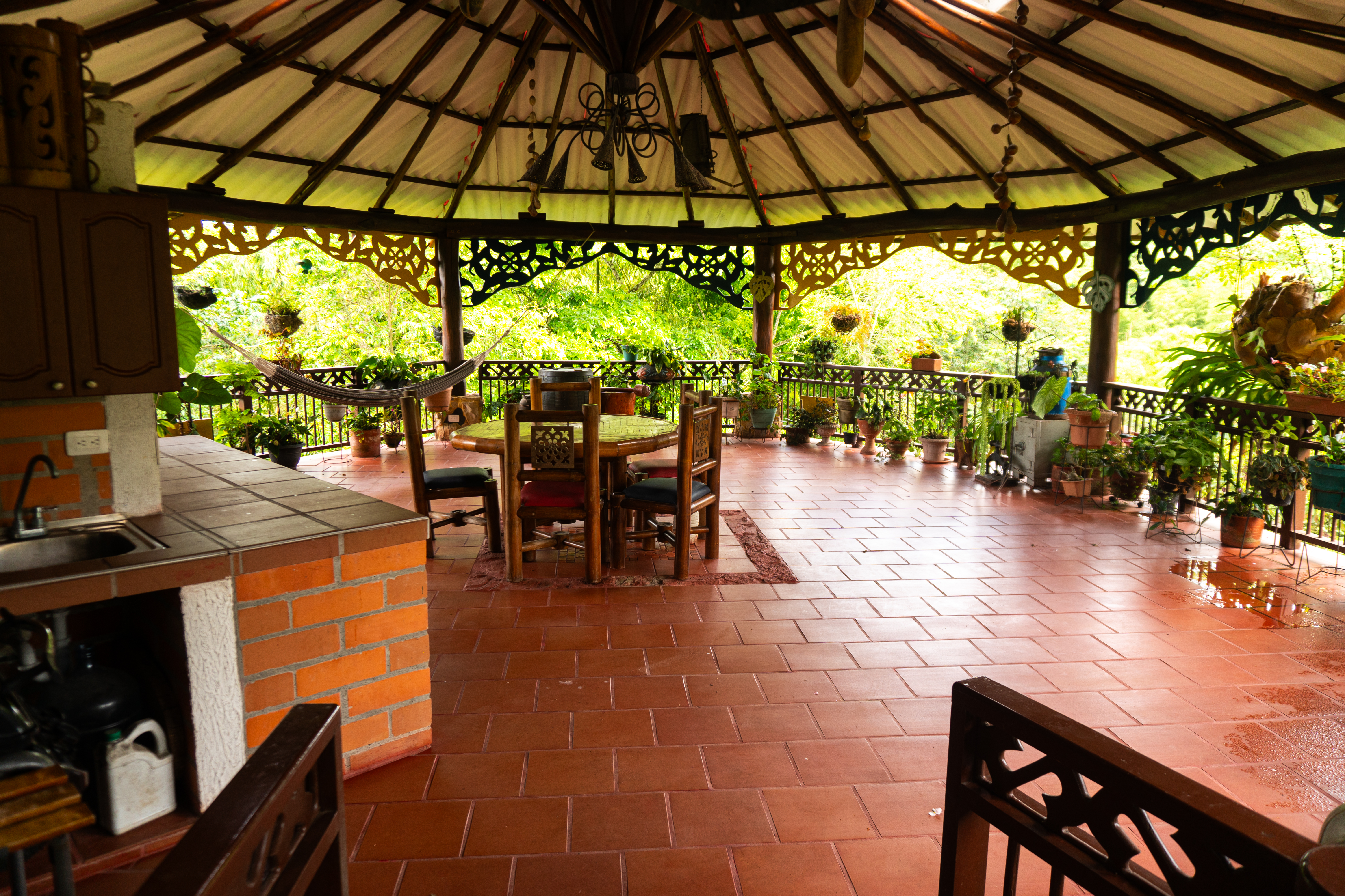 Cuenta con zonas verdes y jardines alrededor de la casa, un amplio y hermoso kiosco con baño y un pequeño apartaestidio por terminar debajo de este.