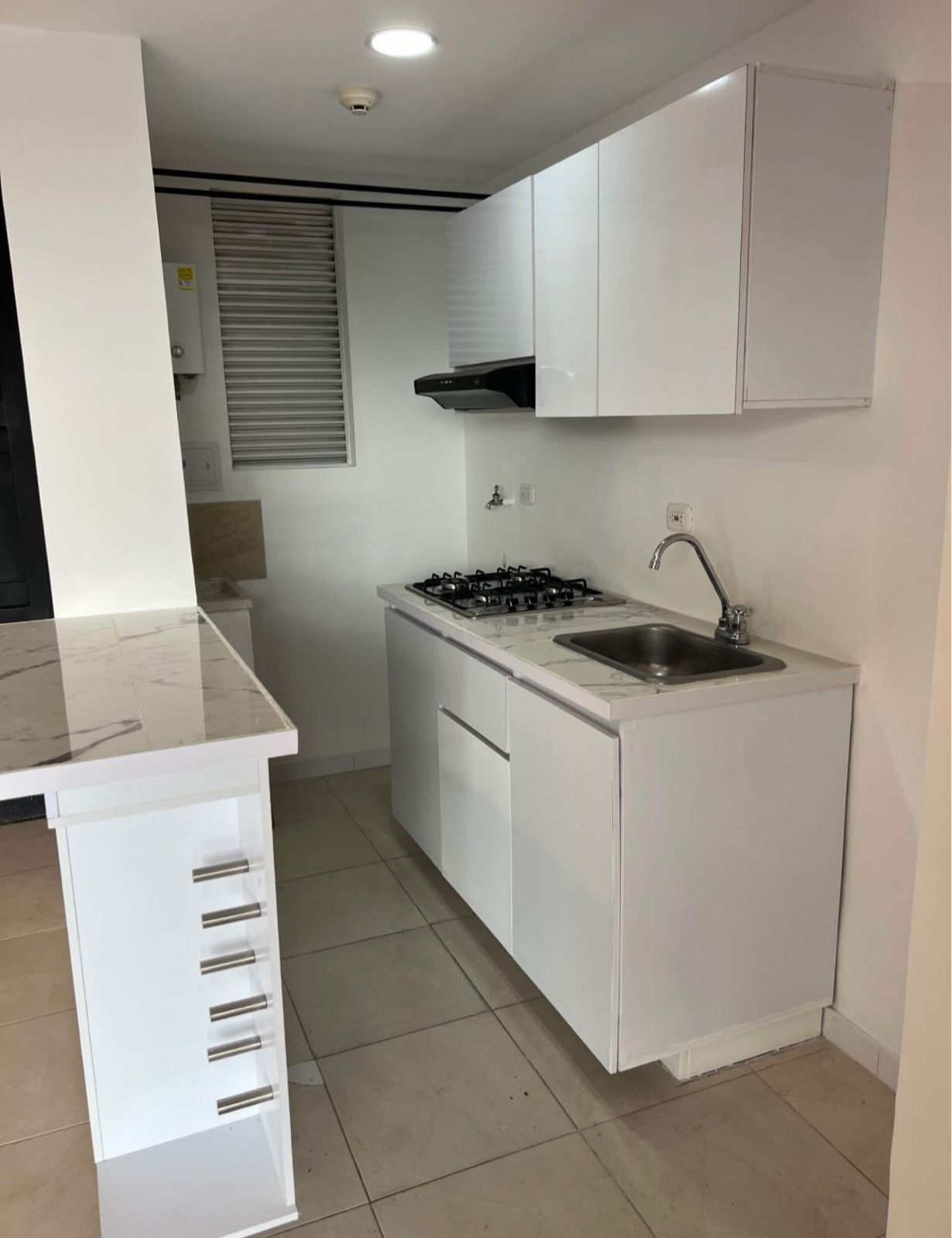 Sala comedor, cocina con barra, gas domiciliario, zona de ropas, 3 habitaciones (2 de ellas con closet), 2 baños con ducha (calentador a gas), un balcón en la sala comedor y otro pequeño en la habitación principal, ascensor, portería 24 horas. (El apartamento no tiene parqueadero.